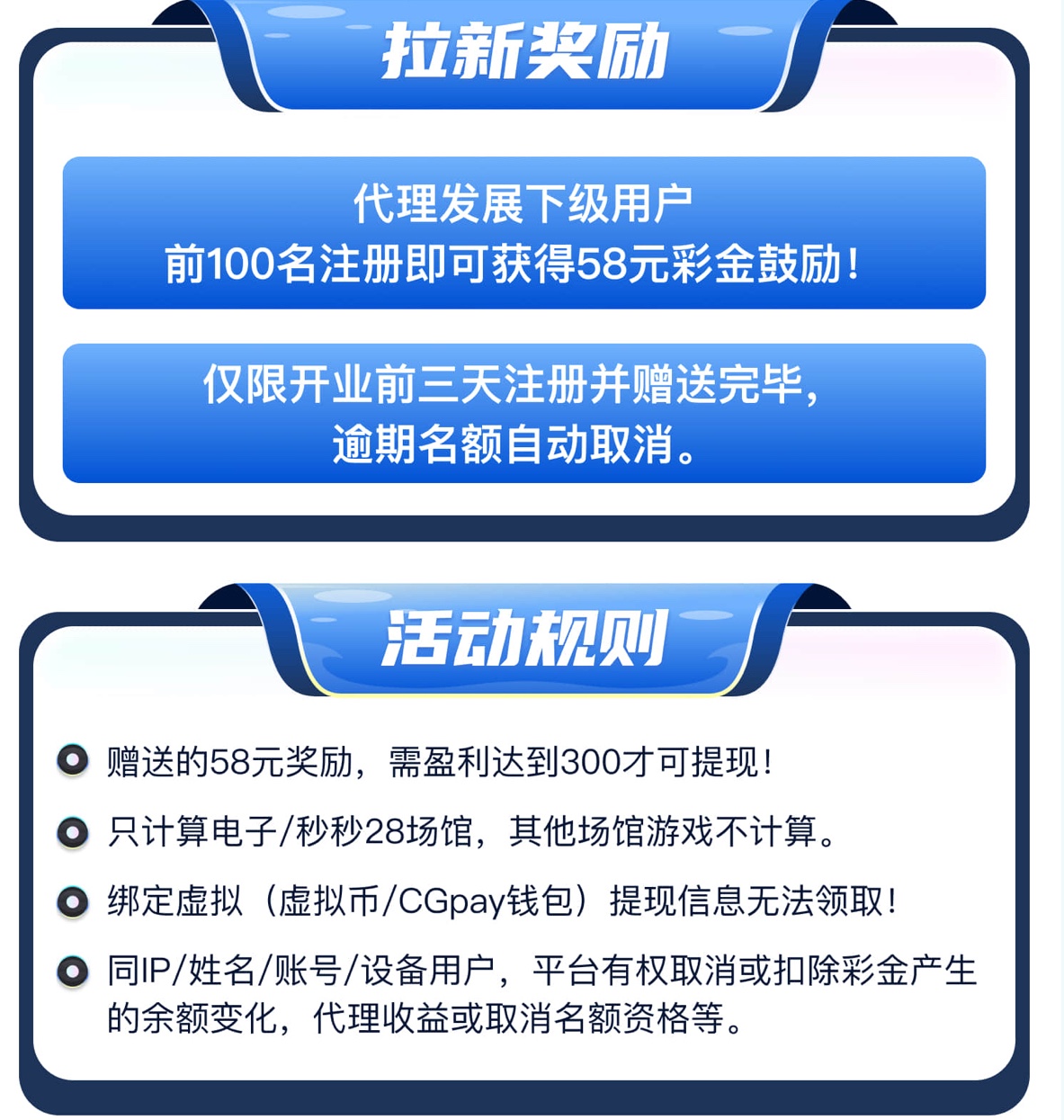 新玩家周期内充值满 1000 流水 3000 以上反588元, 只有注册的对应周期存款才有,必须充值3天以上,要官方平台过审的,可查验,多充多娱乐更容易达标,返现活动达标拿588元,官方没过审的补偿彩金88元,为了避免多iP不要开加速器。